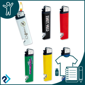 Accendino apribottiglia in plastica e metallo. Di medie dimensione.