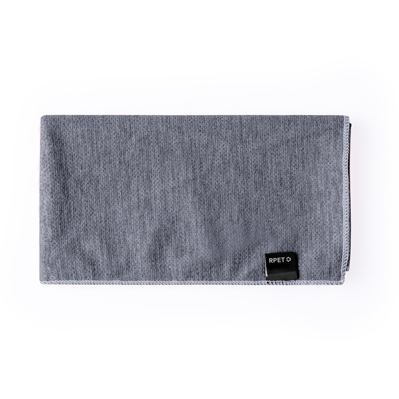 Asciugamano assorbente in RPET 160g/m2. Formato 50×100 cm e presentato in un sacchetto individuale in rete RPET, con retro liscio. Disponibile in un’ampia gamma di colori, con logo RPET sull’etichetta.