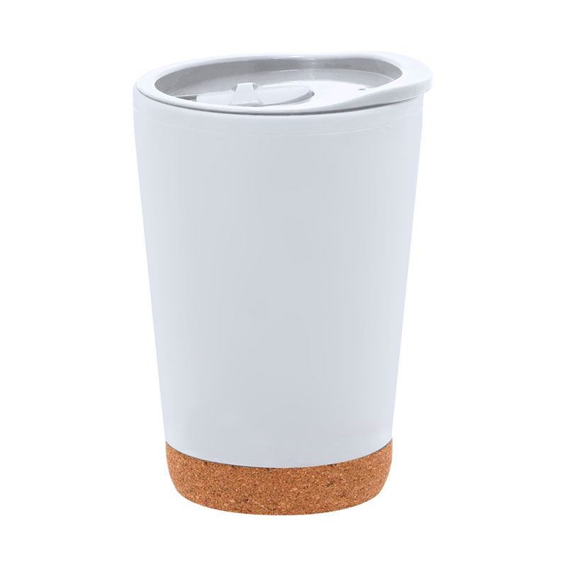 Bicchiere isolante realizzato in PP riciclato resistente a doppia parete con una capacità di 260 ml. Base in sughero e coperchio con erogatore di facile apertura, senza BPA. È ideale per la tua scrivania, tavolo o qualsiasi superficie dove puoi goderti la tua bevanda preferita.