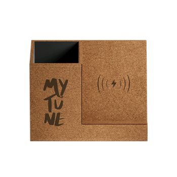 Caricabatterie a induzione da 5W e portapenne in un unico prodotto, rivestito di sughero. La superficie inclinata tiene lo smartphone in posizione verticale mentre avviene la ricarica per induzione (per i modelli compatibili). Il portapenne è molto capiente ed è rivestito all’interno da morbido poliuretano. Bucket è il supporto ideale per mantenere la postazione di lavoro ordinata e per controllare facilmente mail e messaggi dal telefono. Inoltre, grazie a due porte USB aggiuntive sul retro, funziona anche come hub per la ricarica via cavo di più dispositivi. Tutta la superficie esterna è ricoperta in sughero, ed è rifinita con cuciture in filo sui bordi.