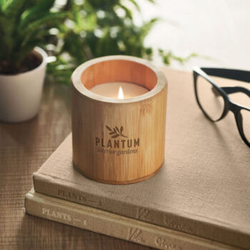 Candela di cera vegetale con profumo di vaniglia in supporto di bamboo. 160 g/m². Tempo di combustione: 30 ore. Create la giusta atmosfera e fate profumare la vostra casa con questa candela di cera naturale. Il supporto in bamboo regala un tocco naturale, di sicuro un grande oggetto decorativo. Il bamboo è un materiale naturale e può avere delle variazioni leggere di colore, dimensione e stampa.