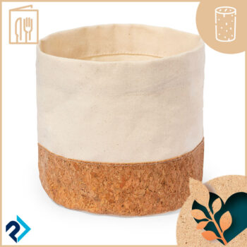 Cestino per il pane in morbido cotone 100% e sughero alla base, con design rotondo. Presentato in un sacchetto individuale riciclato.