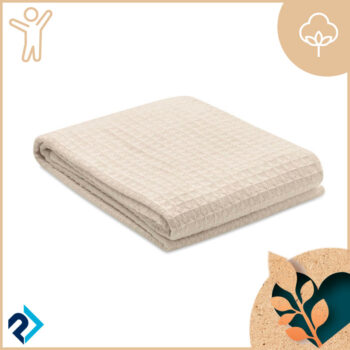 Coperta in cotone leggero da 300 gr/m², motivo waffle. Presentata in una confezione ad apertura scorrevole.