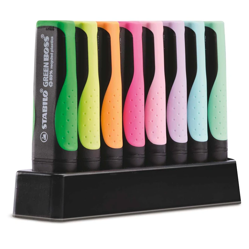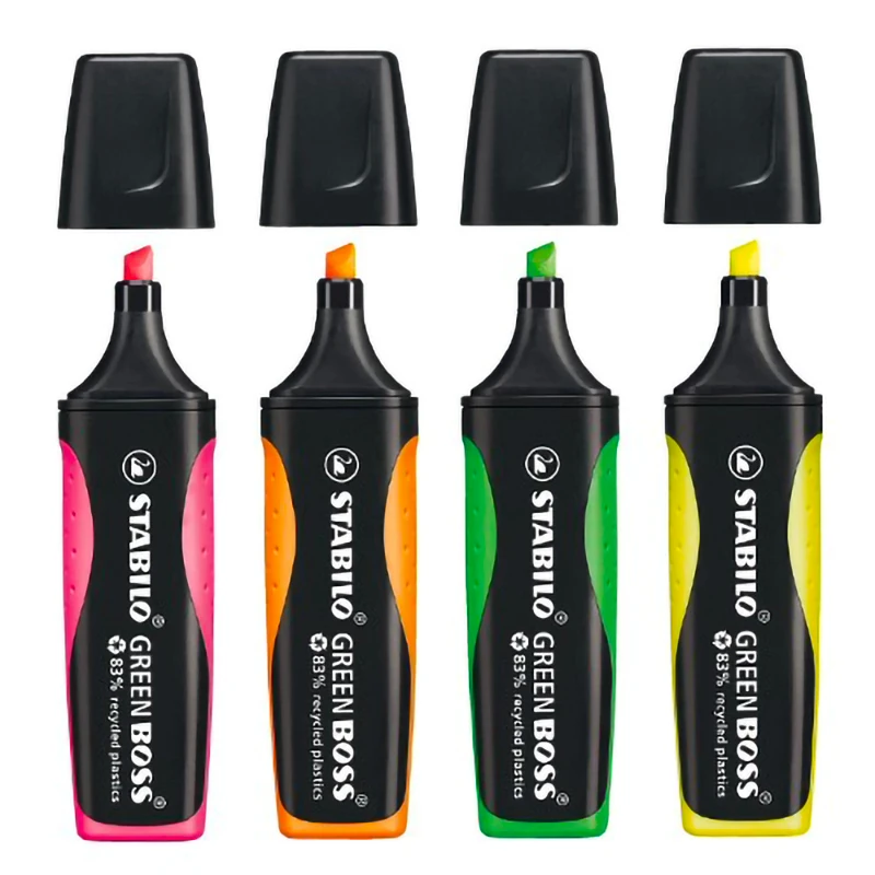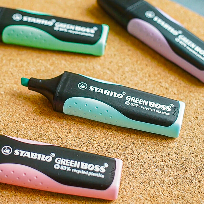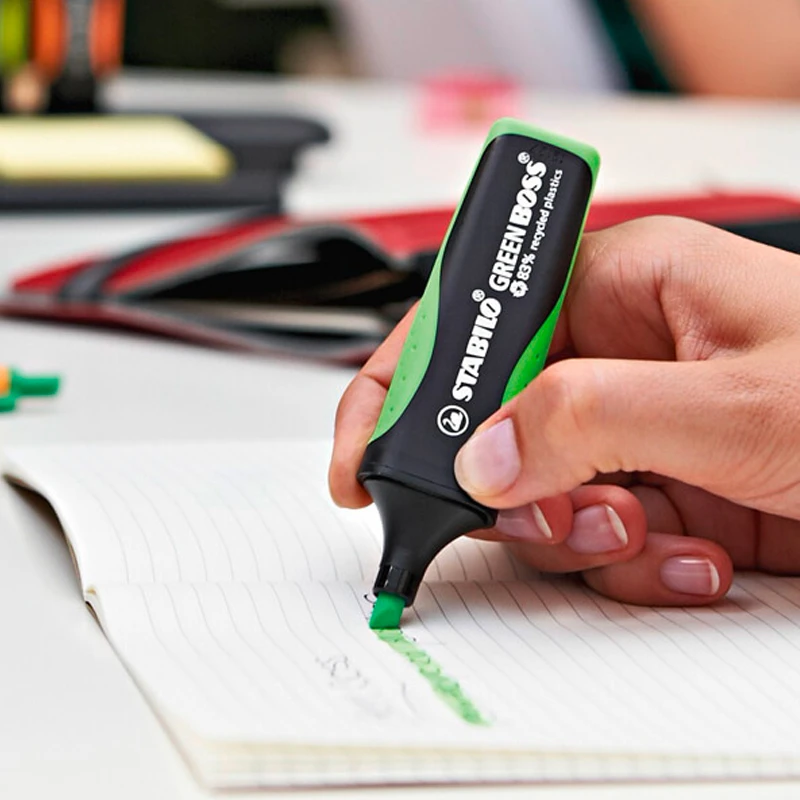 Evidenziatore Stabilo Green Boss che unisce l’elevata qualità con l’ecosostenibilità. L’evidenziatore STABILO GREEN BOSS è ricaricabile ed ha un’ampia superficie personalizzabile.