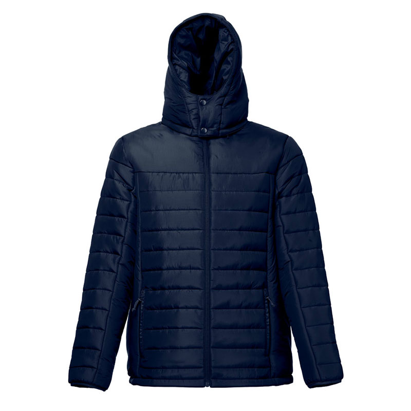 Giacca con cappuccio da uomo in 100% nylon ripstop riciclato (350 g/m²) con interno foderato in 100% nylon taffetà riciclato (350 g/m²) per un maggiore comfort quando la si indossa. Il cappuccio è imbottito e ha diverse funzioni: fascia elastica, due bottoni a pressione e zip per essere rimosso. Apertura frontale con cerniera YKK® – un marchio che utilizza attrezzature moderne con un elevato controllo di qualità – e maniglia. Contiene due tasche anteriori con cerniera e tiretto e due tasche interne con cerniera adesiva. In fondo alla schiena c’è un accesso con cerniera per una facile personalizzazione.