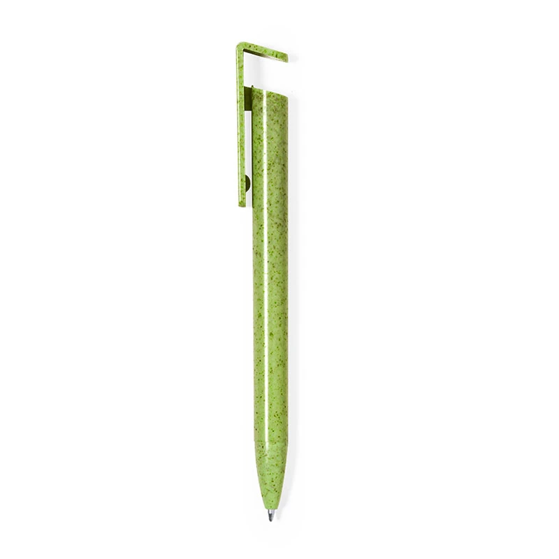 Penna con supporto smartphone. Penna elegante e pratica realizzata in fibra di grano e ABS. Meccanismo a pulsante, con porta clip integrato per dispositivo mobile. In inchiostro blu e con logo Wheat Straw sulla parte superiore della penna.