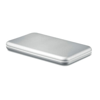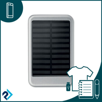 Powerbank solare da 4000 mAh in alluminio. Adatto a smartphones, output DC5V/1A. Include luce indicatore e cavo USB con presa mini USB