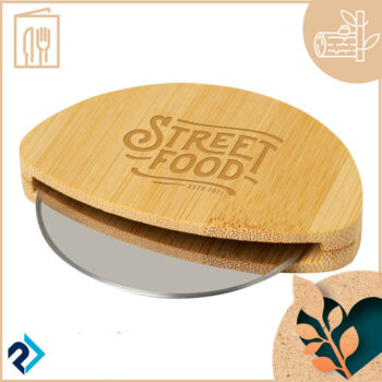Tagliapizza con manico in bamboo e lama in acciaio inossidabile.